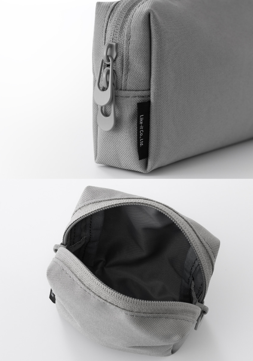 ボックスに入れたままでも開け閉めしやすい両開きファスナー仕様です。ファスナーの引き手同士が干渉せずにコンパクトに収まります。