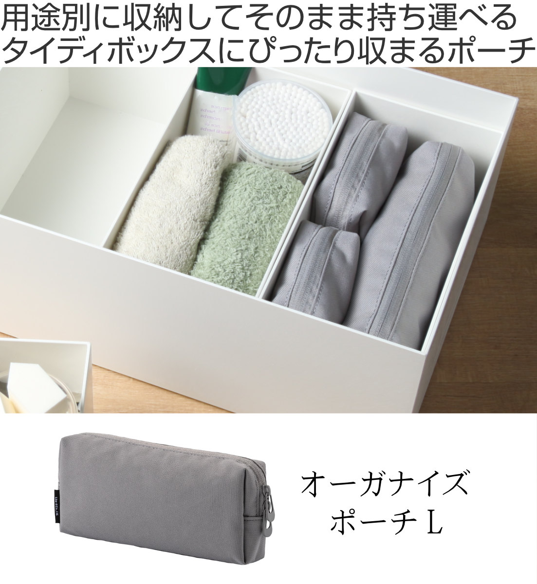 ![]() オーガナイズポーチ S | ![]() オーガナイズポーチ L |