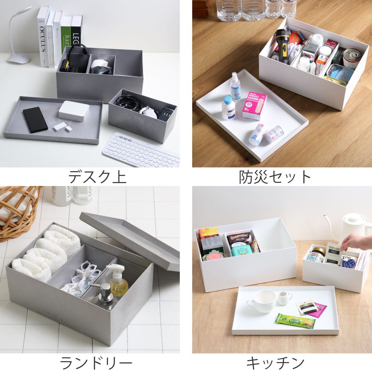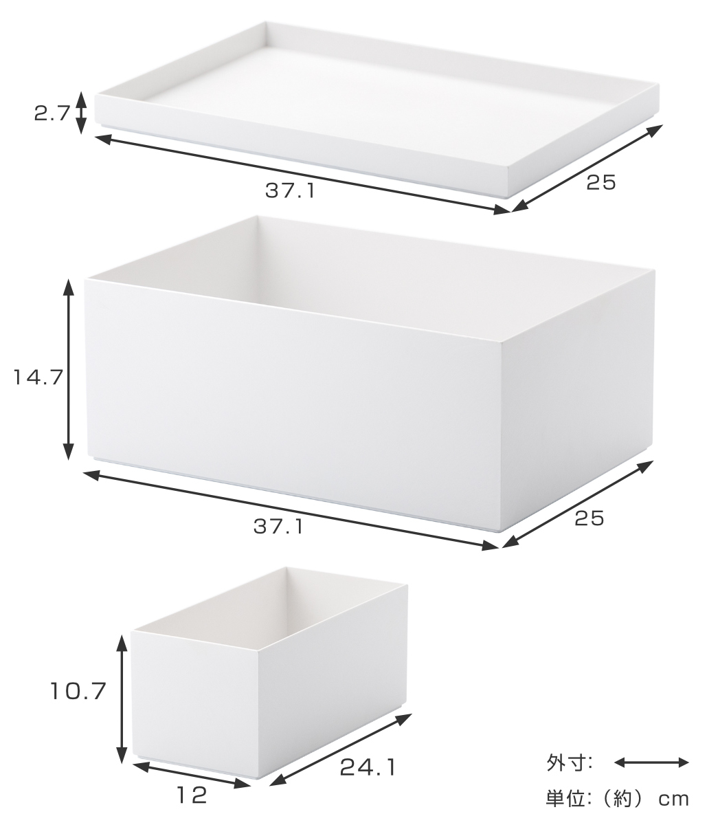 | サイズ | ボックス 深型:約 幅25×奥行37.1×高さ14.7(cm) ボックストレー:約 幅25×奥行37.1×高さ2.7(cm) インナー 深型:約 幅12×奥行24.1×高さ10.7(cm) |