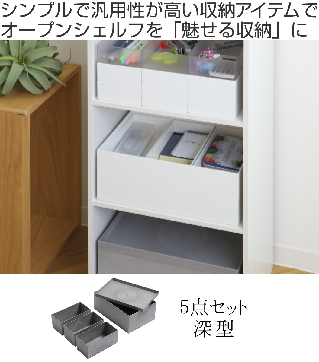 | 内容量 | 同色5点セット ボックス 深型1個、ボックストレー1個、インナー 深型3個 |