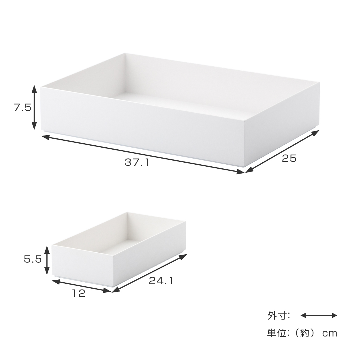 | サイズ | ボックス 浅型:約 幅25×奥行37.1×高さ7.5(cm) インナー 浅型:約 幅12×奥行24.1×高さ5.5(cm) |