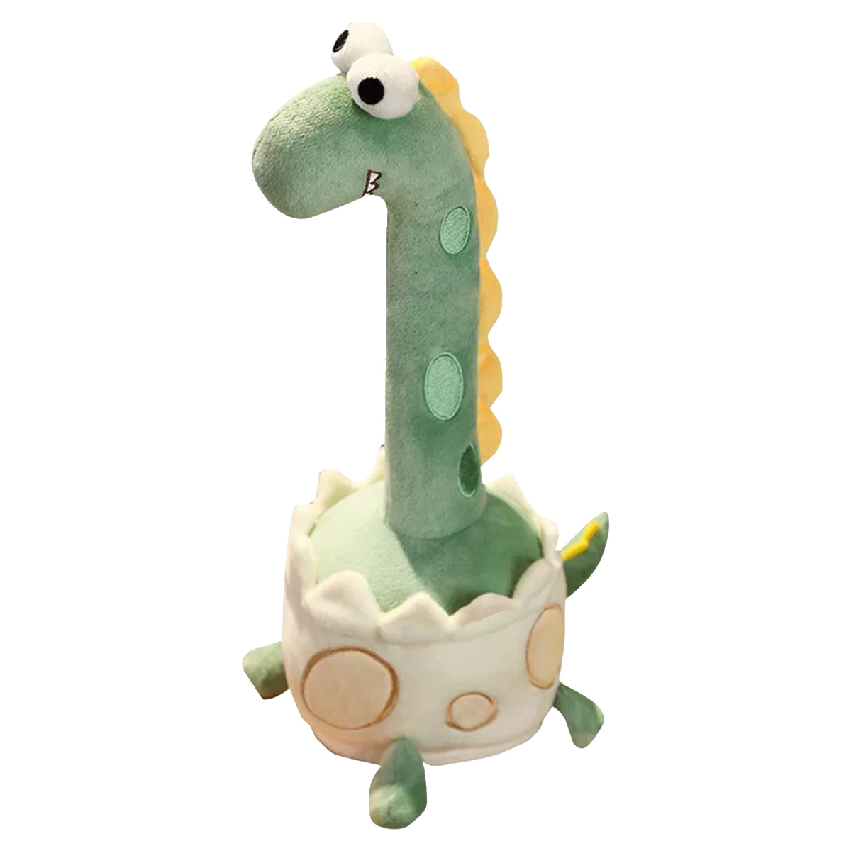 踊りながらものまねする陽気な恐竜話しかけると踊りながらモノマネをする陽気な恐竜のぬいぐるみです。あなたが話した言葉を面白い声でマネしながら、音楽に合わせて光ってノリノリで踊ります。恐竜の愉快な声と動きに思わず笑っちゃう楽しいおもちゃです。