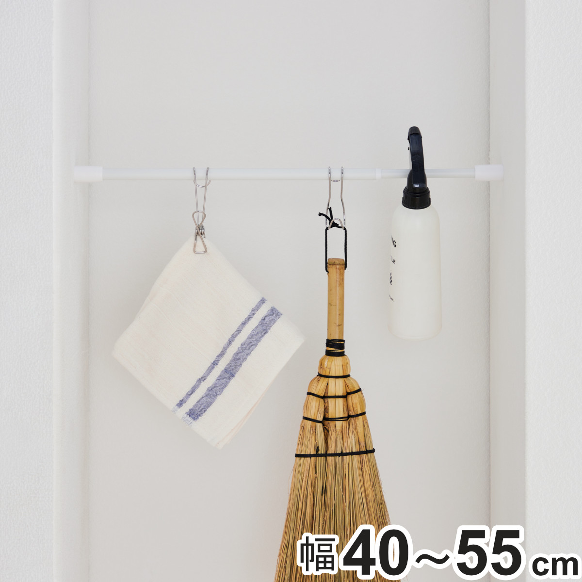 暮らしにフィットするシンプルなつっぱり棒 40〜55cm様々なテイストに馴染むシンプルなつっぱり棒です。マットな質感のホワイトなので落ち着いた雰囲気になっています。お家の中のデットスペースを利用して収納力をアップできるので、クローゼットやキッチン、ランドリーなど様々な場所で大活躍してくれます。