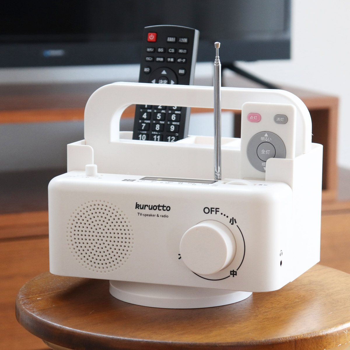 手元 スピーカー 回転する 手元スピーカー ラック kuruotto クルオット 電池式 ( テレビ用 TV用 高齢者 有線 ケーブル リビング キッチン 夜間 簡単操作 )