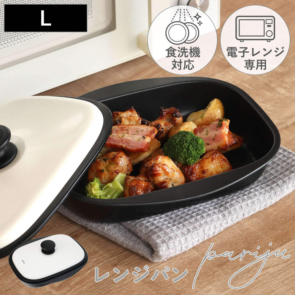 落ち着いたモノトーンカラーで、お皿として食卓に並べてもおしゃれです。洗い物も減るので家事の時短にもなります。
