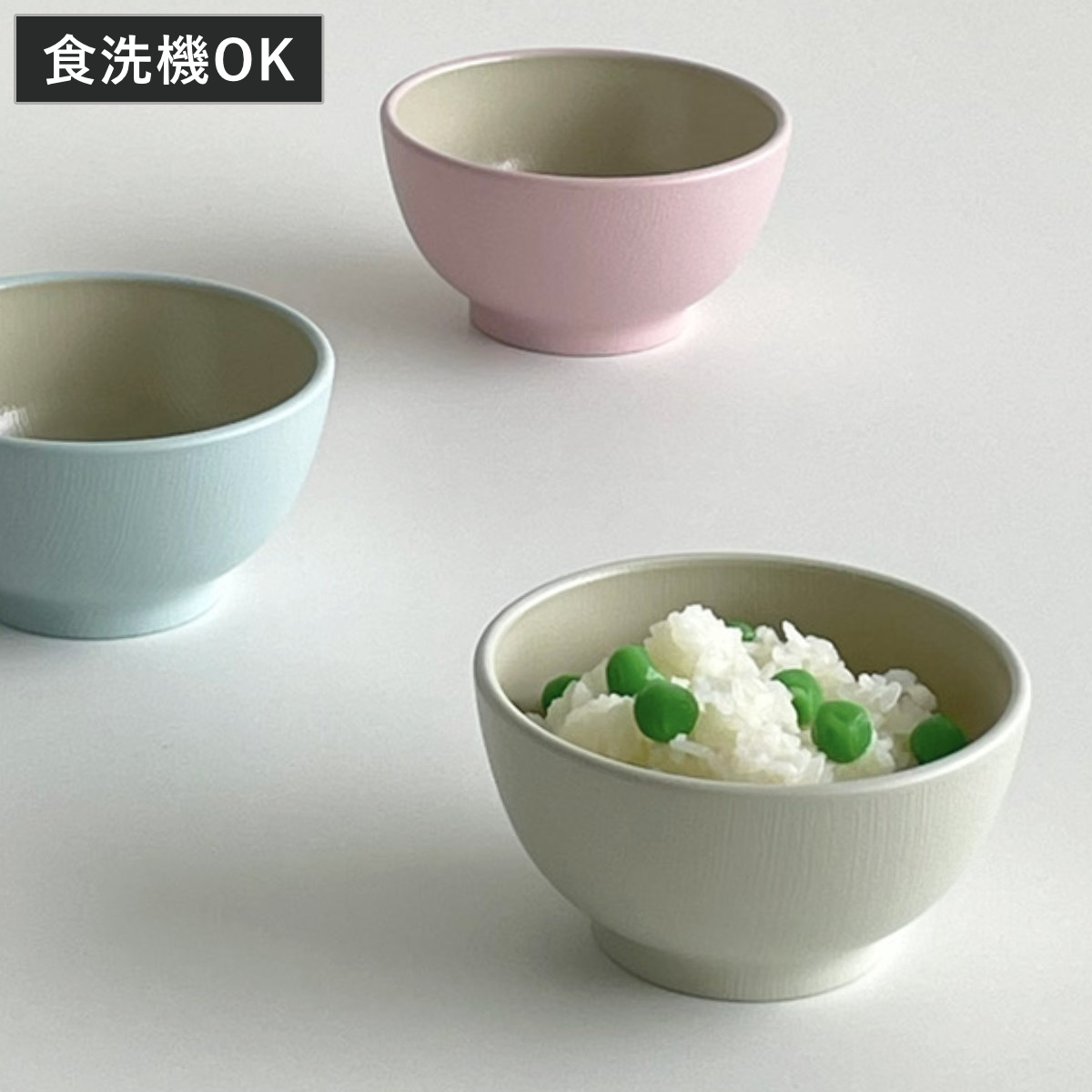 ペールカラーの子ども用茶碗やさしい色合いのペールカラーの子ども用茶碗です。お子様の手にすっぽりと収まりやすい小ぶりなお茶碗です。樹脂製で割れにくく、安心してお使いいただけます。