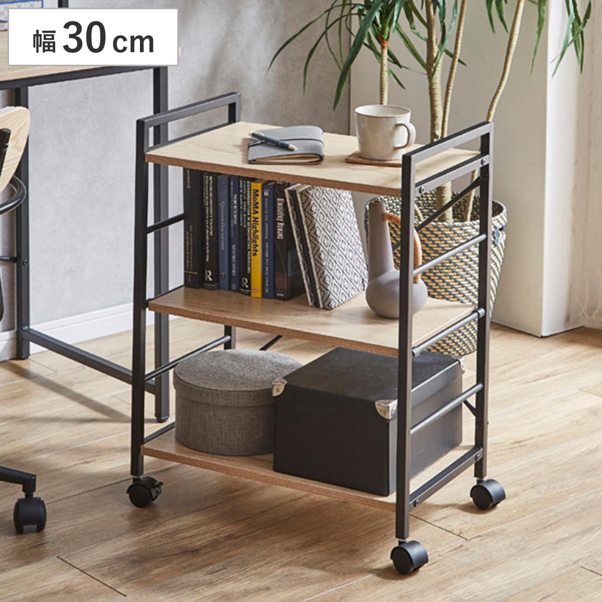 ブラックアイアン×古木風のキャスター付きワゴン 幅30cmシンプルなデザインで空間に馴染みやすいワゴンです。古木風のリアルな木目を再現した3Dシートを使用しており、ブラックアイアンと組み合わさりモダンな風合いです。リビングやデスク周りなど、様々なシーンでお使いいただけます。