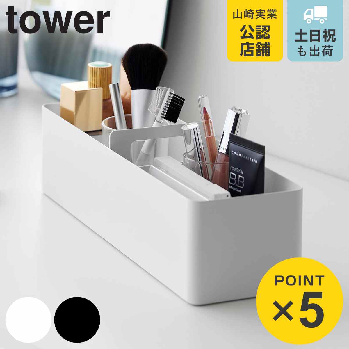 収納 収納ケース 仕切り付き 持ち運び 小物ケース 小物入れ ケース 取っ手付き 仕切り 卓上収納 4903208018555 yamazaki towerシリーズ 山実 YAMAZAKI 山崎 やまじつ 白 黒 モノトーン 無地 シンプル スタイリッシュ ホワイト ブラック メイクボックス 薬ケース 薬箱 薬 衛生用品 メイク用品 コスメ 小物 雑貨 シートマスク 湿布 マグネット付き仕切り リビング 棚 洗面所 ランドリー ドレッサー 整理 整頓 キッチン 化粧品 メイク道具 カフェセット 調味料 文房具 卓上 整理整頓 メイク 手芸 デスク収納 文具収納 おしゃれ オシャレ お洒落 リモコン コスメ収納 メイク収納 リモコンラック 机上 ペン LH14614