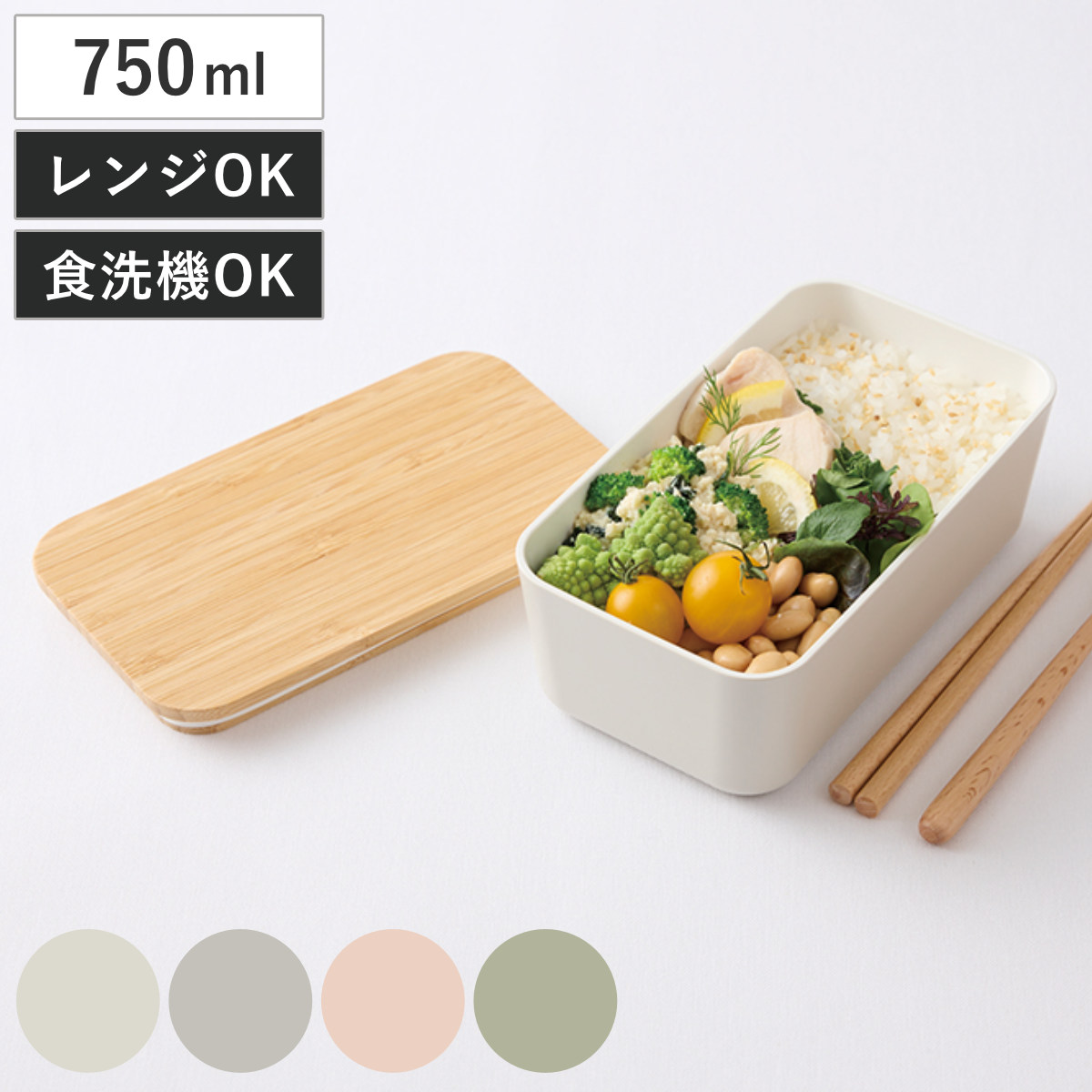 シンプルな機能美を持つベーシックなランチボックス●フラットな蓋に本体は4色のナチュラルなカラーで塗装されたランチボックスです。