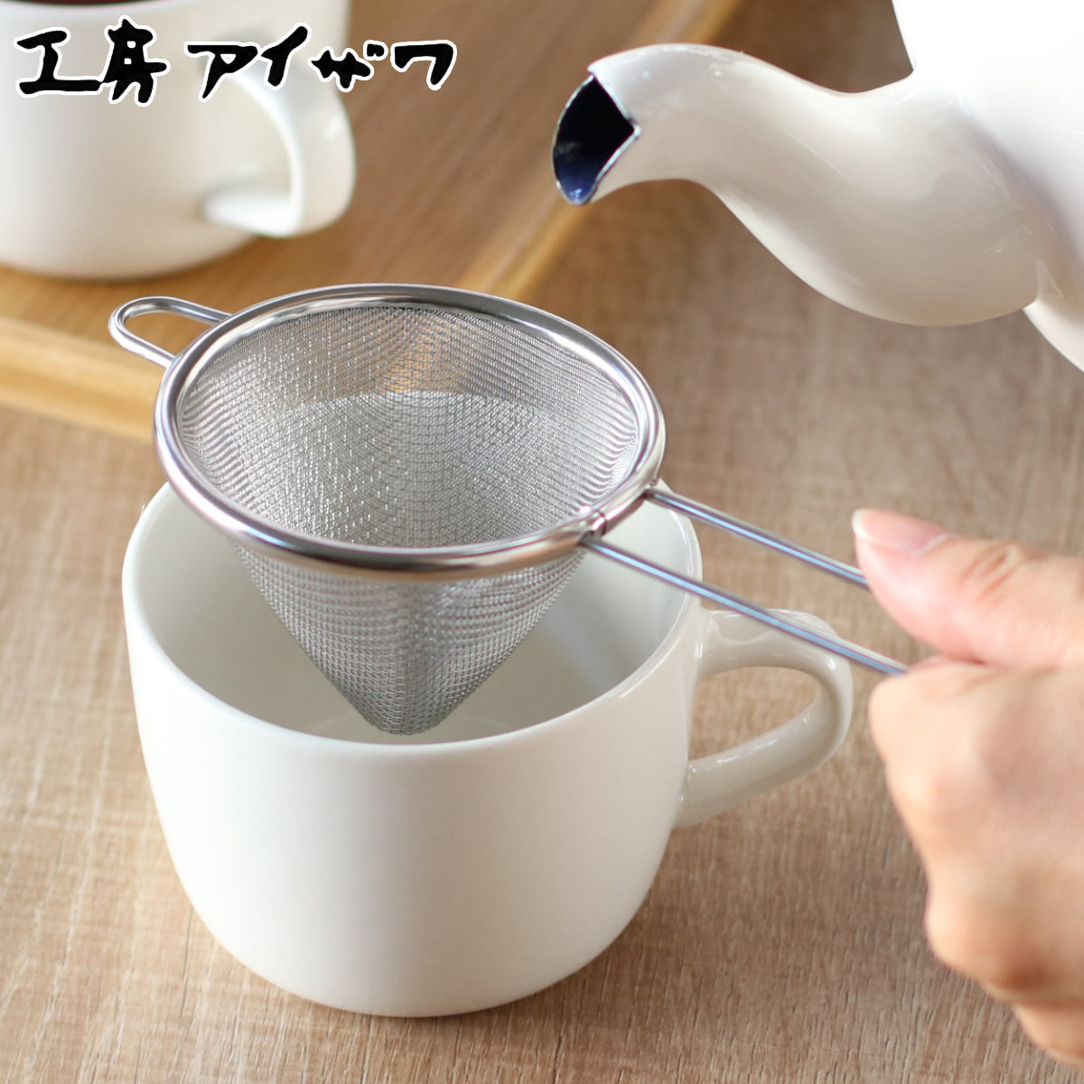 工房アイザワ こもの100 茶こし 三角茶こし 中 ( aizawa ステンレス 茶漉し 柄付き 紅茶 ティーストレーナー 三角 アイザワ 日本製 )