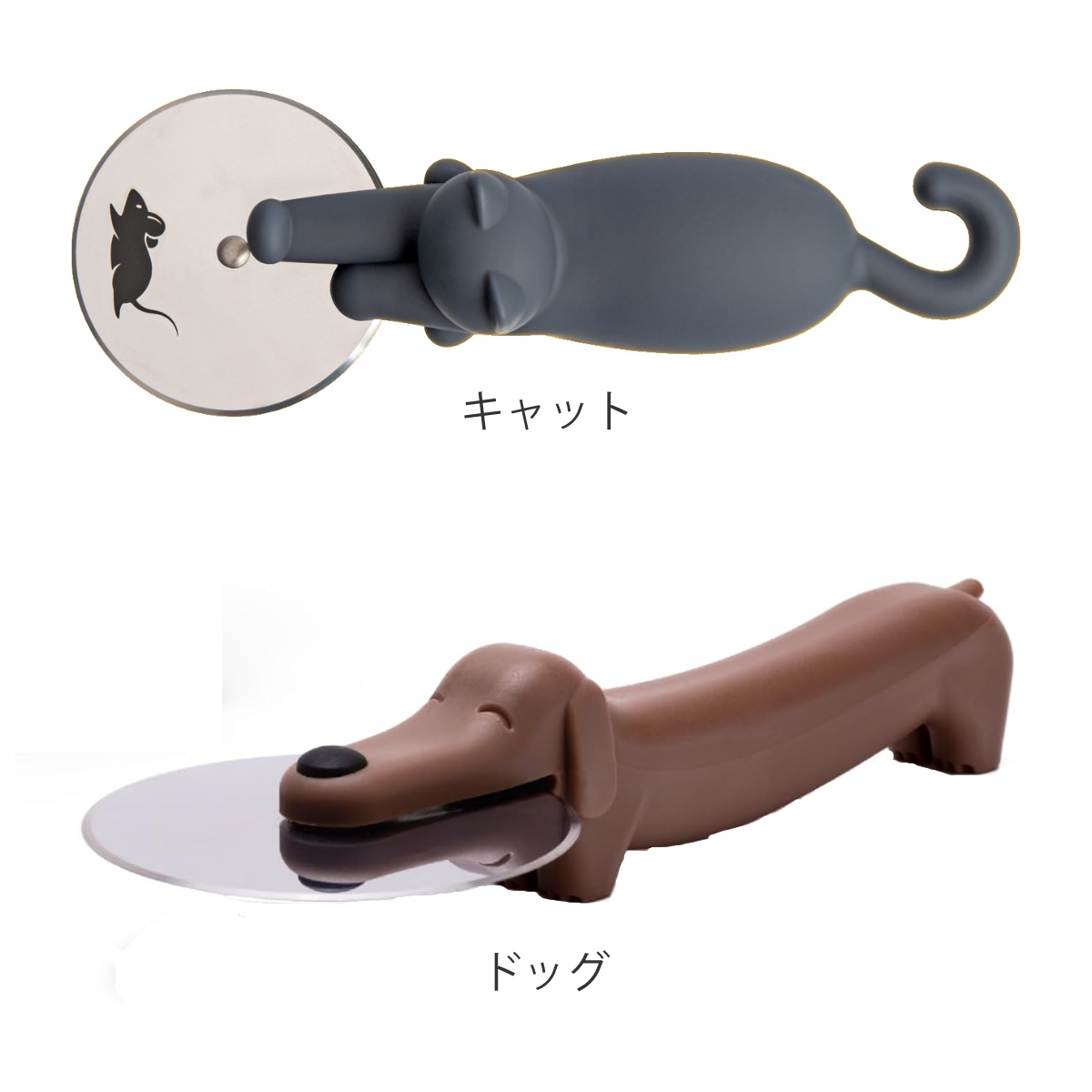 猫がネズミと追いかけっこしながらピザを切る?!【キャット】カッター部分にネズミがプリントされており、コロコロ転がすと、まるで追いかけっこをしてるような、とてもユニークな猫のピザカッターです。猫とピザ好きにはたまらない逸品です。