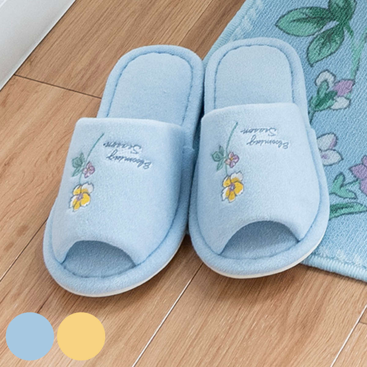 植物とお花をモチーフにしたボタニカル柄●植物とお花をモチーフにしたボタニカル柄の「ブルーミングシーズン」シリーズのトイレ用スリッパです。