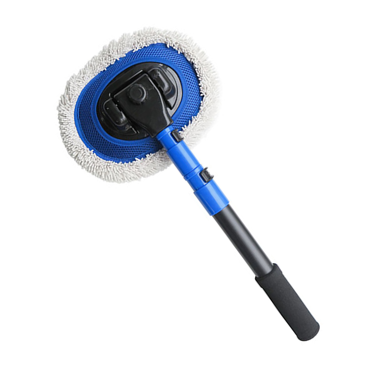 絶妙なカーブのきいた3段階伸縮柄の高所洗車しやすいモップ●ポールの角度が約15度の絶妙なカーブで、高所洗車が劇的にラクになるモップです。