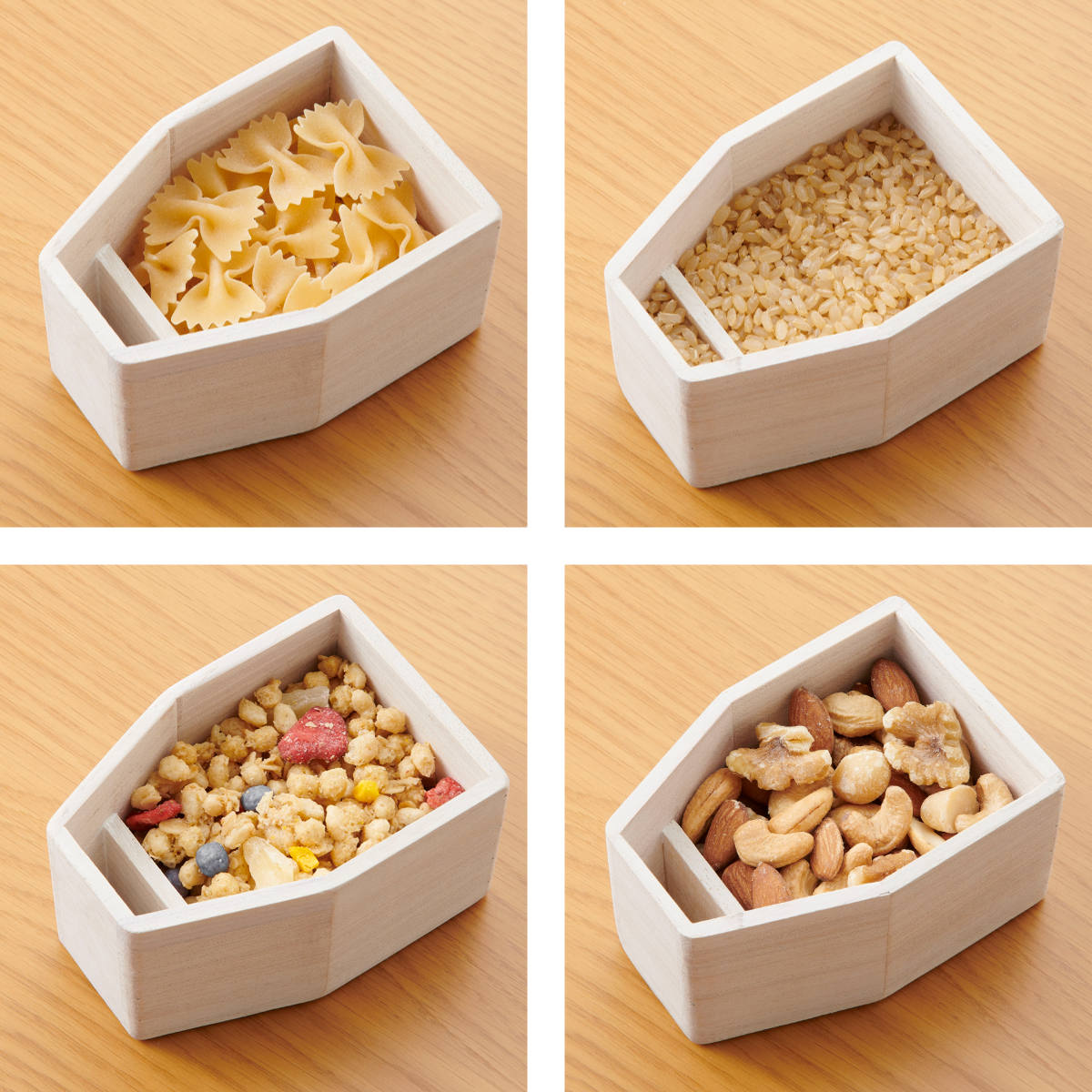 お米以外にも、玄米やシリアル、パスタ、ナッツやコーヒー豆など様々な食材の保存容器としてお使いいただけます。テーブルに出したままでも邪魔にならないサイズで朝食の準備がスムーズに。