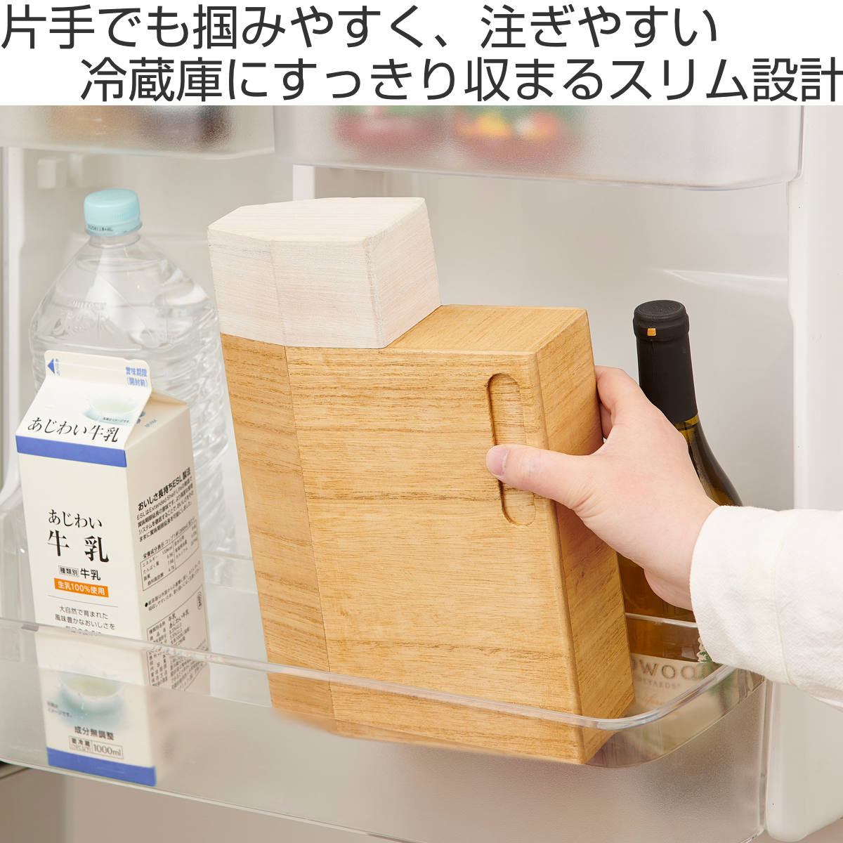 側面のくぼみと鋭角の注ぎ口は片手でも持ちやすく、女性にも使いやすい形状です。必要な時に冷蔵庫からの出し入れがスムーズにできます。