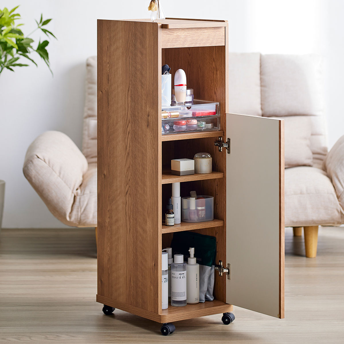 コスメ収納 コスメワゴン ラック 棚 隠す収納 コンパクト スリム 省スペース ブラウン 木目調 コスメテーブル ストッカー リビング 幅30 奥行40 高さ100 cm センチ おしゃれ お洒落 オシャレ かわいい 可愛い カワイイ 人気 おすすめ 便利 生活 ひとり暮らし 一人暮らし 新生活
