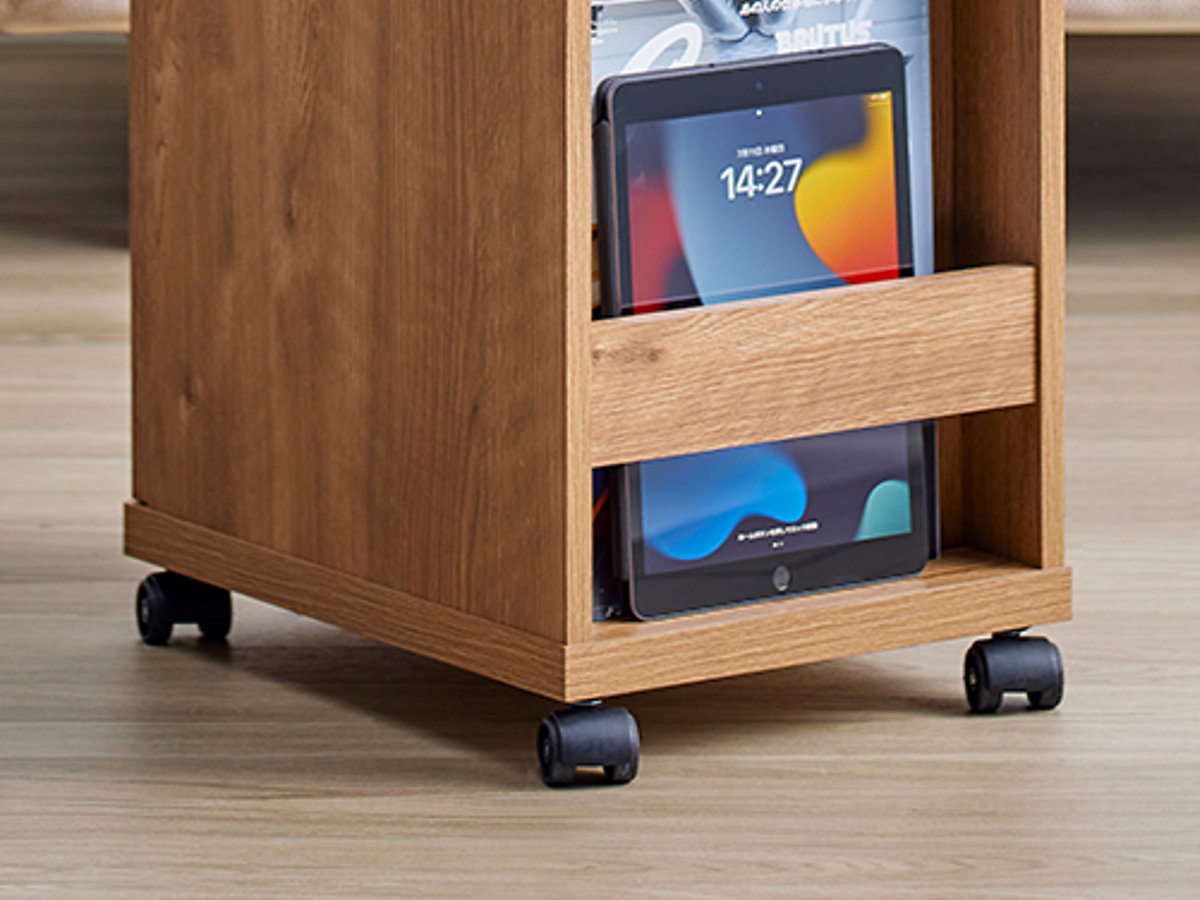 背面にも便利な収納スペース付きです。雑誌やタブレットなども収納できるので、リビングではソファ横に置いても活躍します。