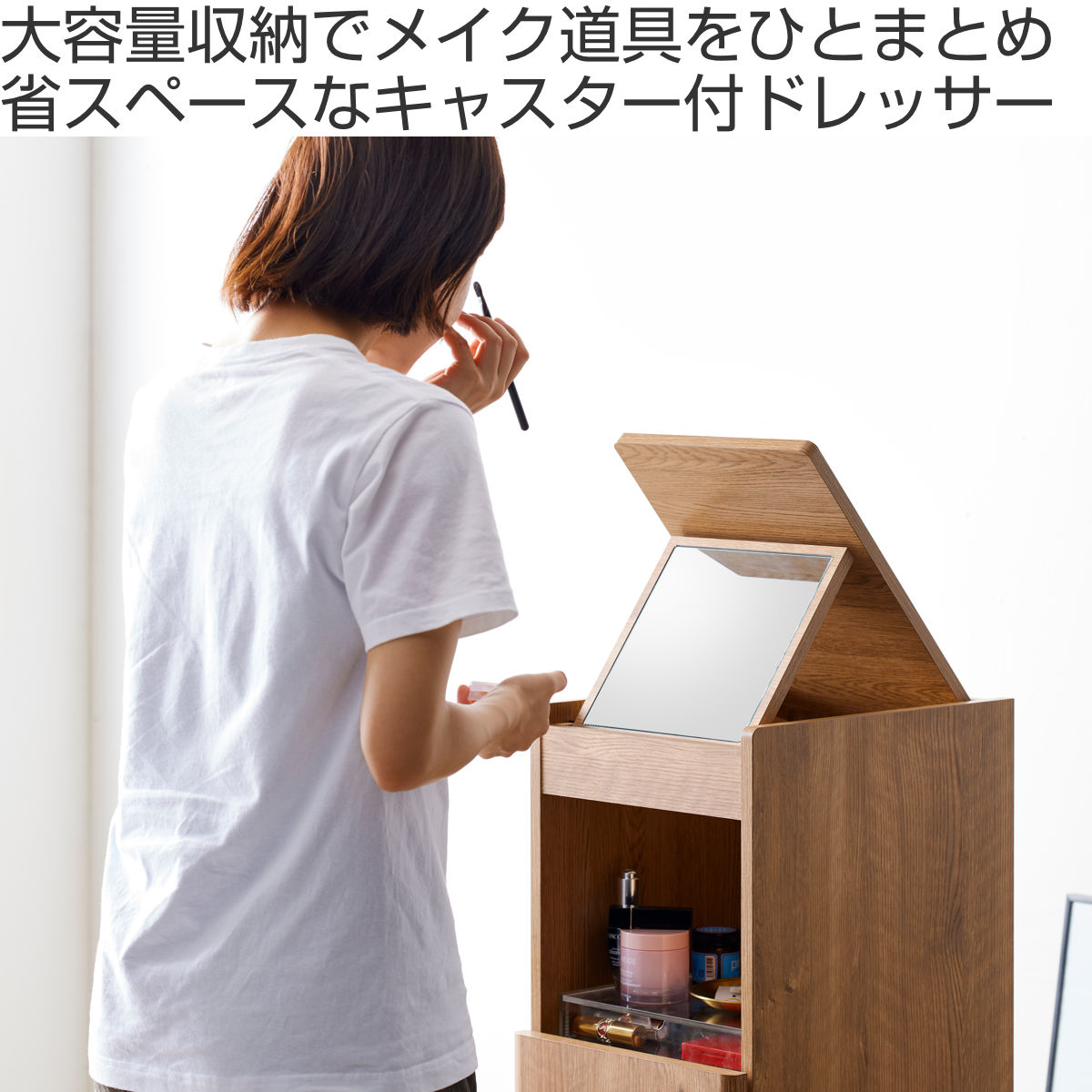 コスメストレージ ドレッサー 高さ100cm キャスター付 ( ドレッサーワゴン 鏡台 メイク台 ミラー付 隙間収納 )