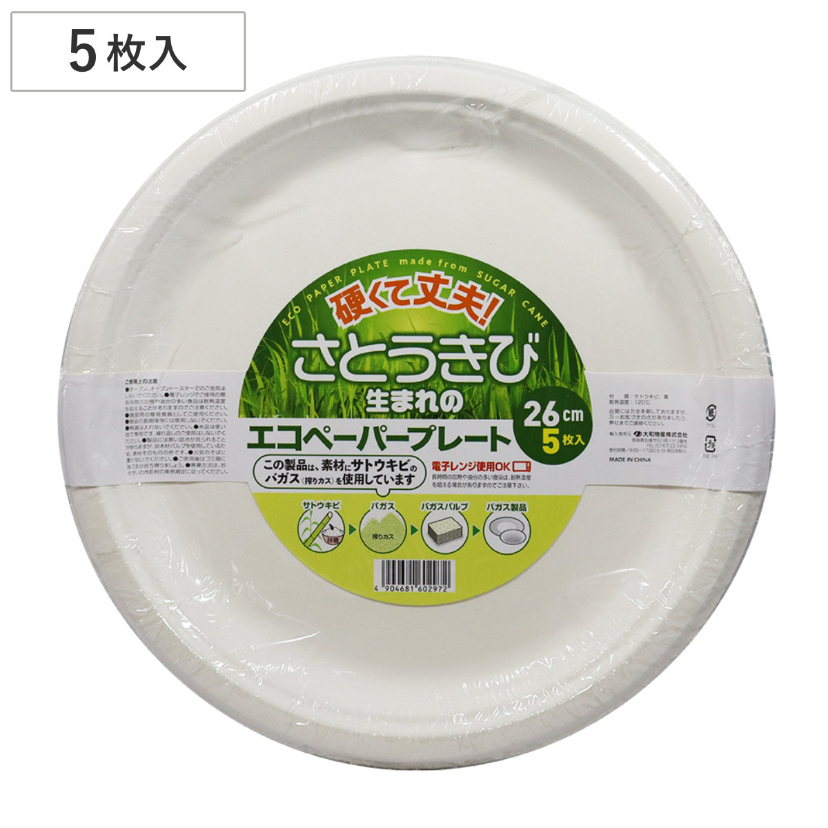 紙皿 新エコペーパープレート 26cm 5枚入 ( 電子レンジ対応 丸型 26センチ ペーパープレート 紙プレート さとうきび 硬い 丈夫 )