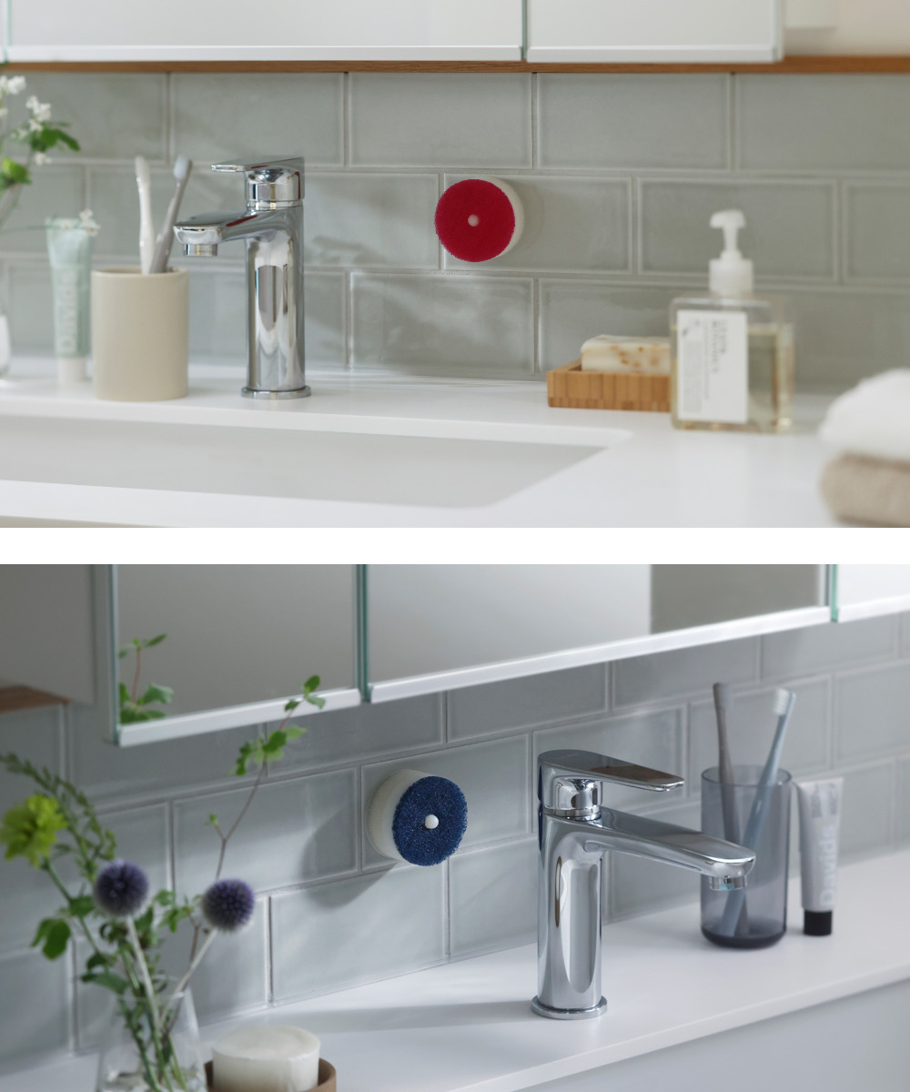 手洗い、うがい、歯みがき、洗顔など1日に何度も使う洗面台。気になる汚れを見つけたらサッと拭き取って、洗い流した後はパパッと片付けられる「洗面スポンジPOCO吸盤付き」の替えスポンジ2個入りです。