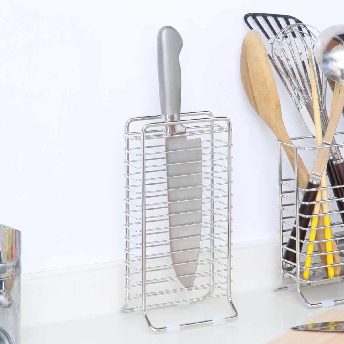 ![]() 包丁を立てて水切り・収納できるスタンド | ![]() 水切りマットとしても使える厚手のふきん |