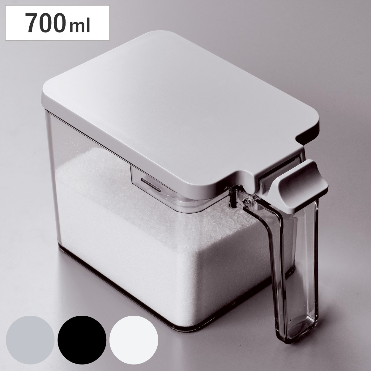| 材質 | 本体・フタ:ポリスチレン すり切り板・スプーン:ポリプロピレン プッシュレバー:ABS樹脂 バネ・パッキン:シリコーンゴム |