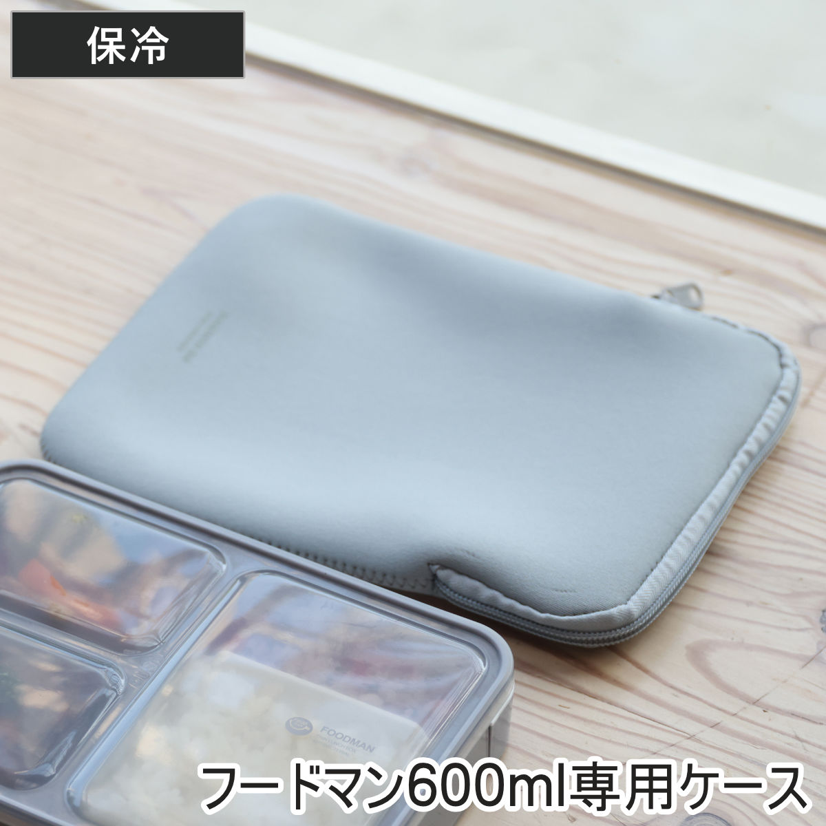 フードマン 600ml専用ケース お弁当箱フードマン600mlに対応した専用ケースです。フードマンがピッタリ収まるサイズなので、スマートに持ち運べます。保冷効果があり、暑い日のお弁当の持ち運びに保冷ケースとしてご使用いただけます。ウェットスーツ素材を使用しており、汚れても洗えるので衛生的です。