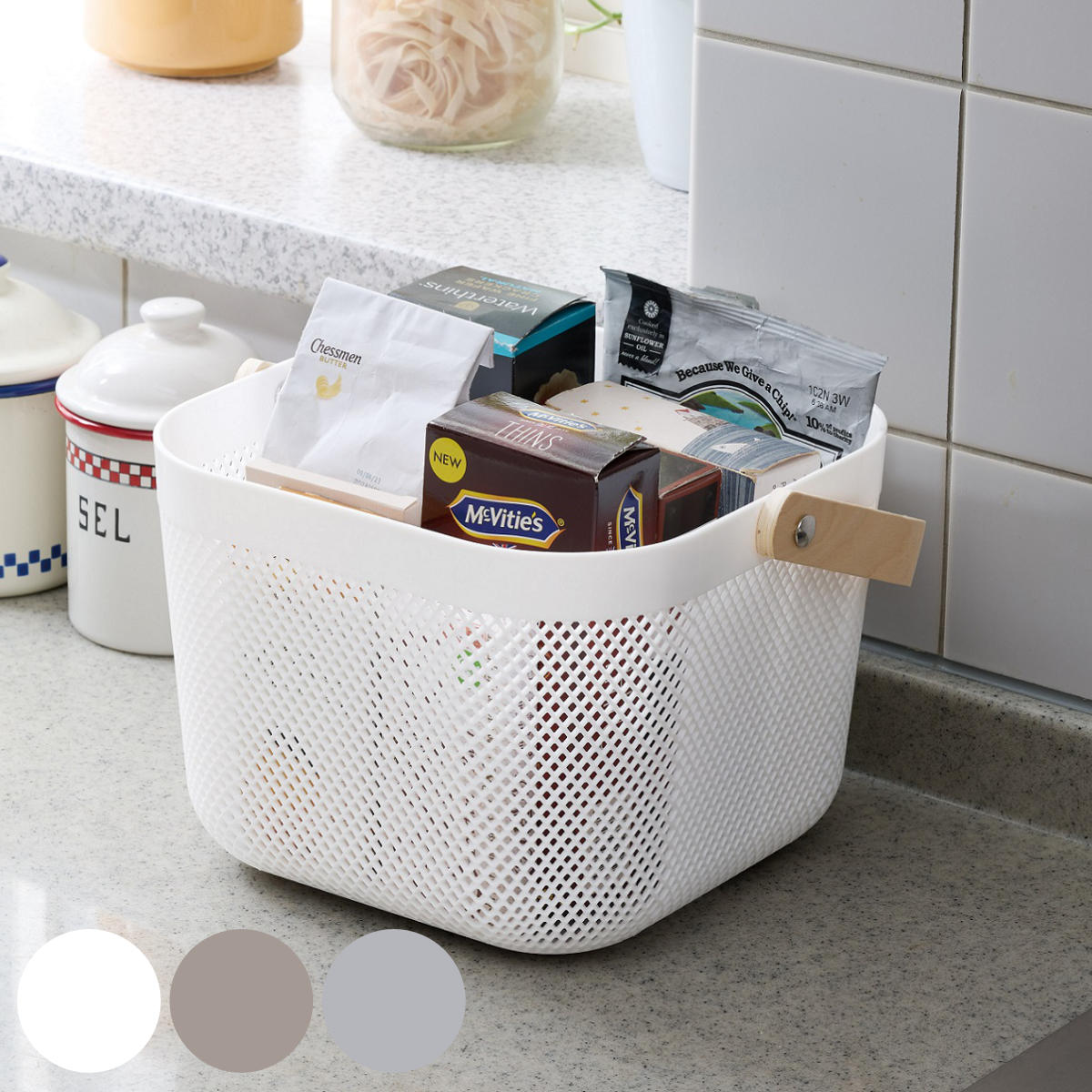 かご 木製 持ち手付き スクエアバスケット 幅24×奥行24×高さ18cm ( 収納 メッシュバスケット バスケット 収納バスケット プラスチック製 小物入れ )