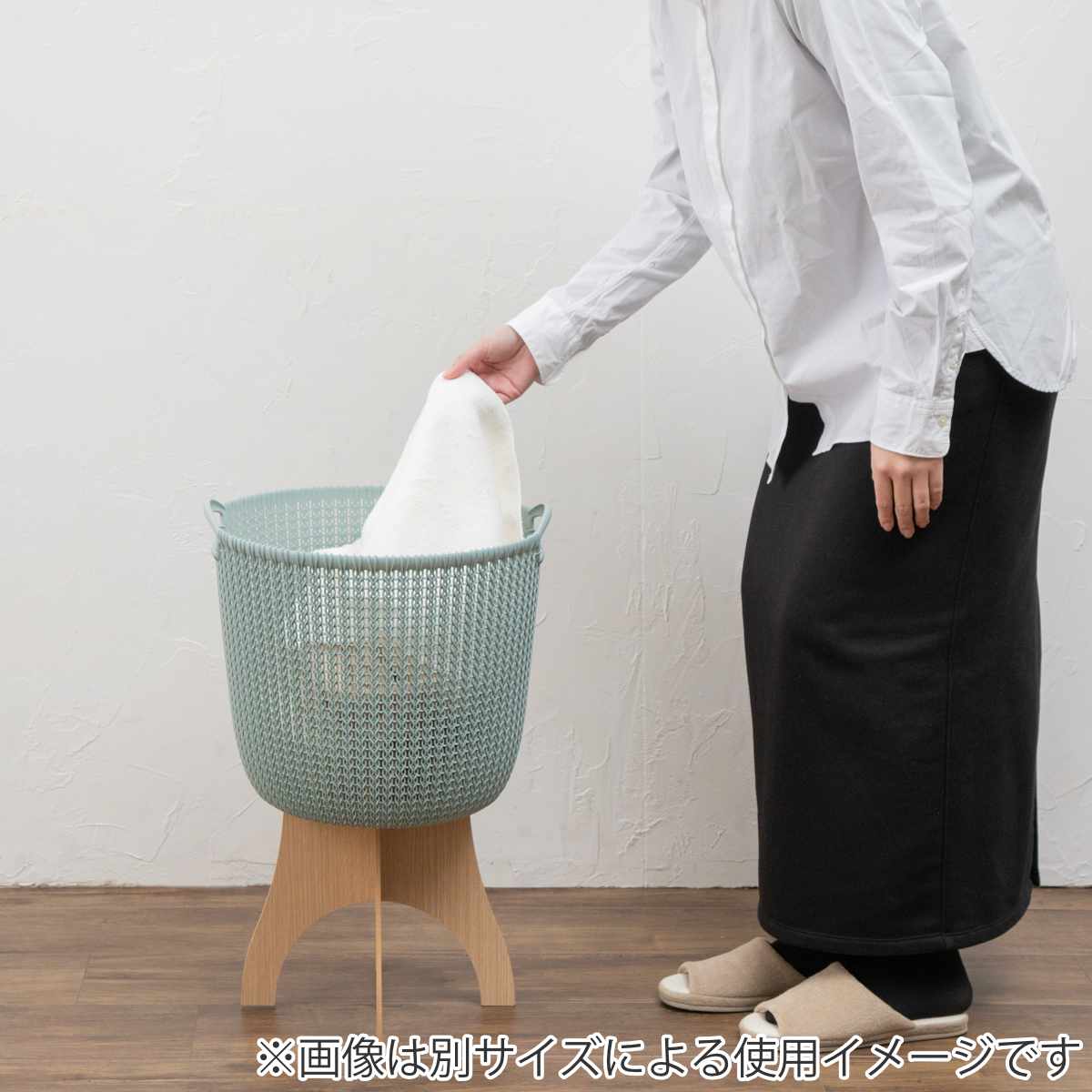 ソファサイドの収納に別売りのニットスクエアバスケット 19L専用のスタンドです。高さが出るのでソファ・ベッドサイドで雑誌やブランケットの収納に便利です。別売りのフタと組み合わせることでさらに使用シーンが広がります。