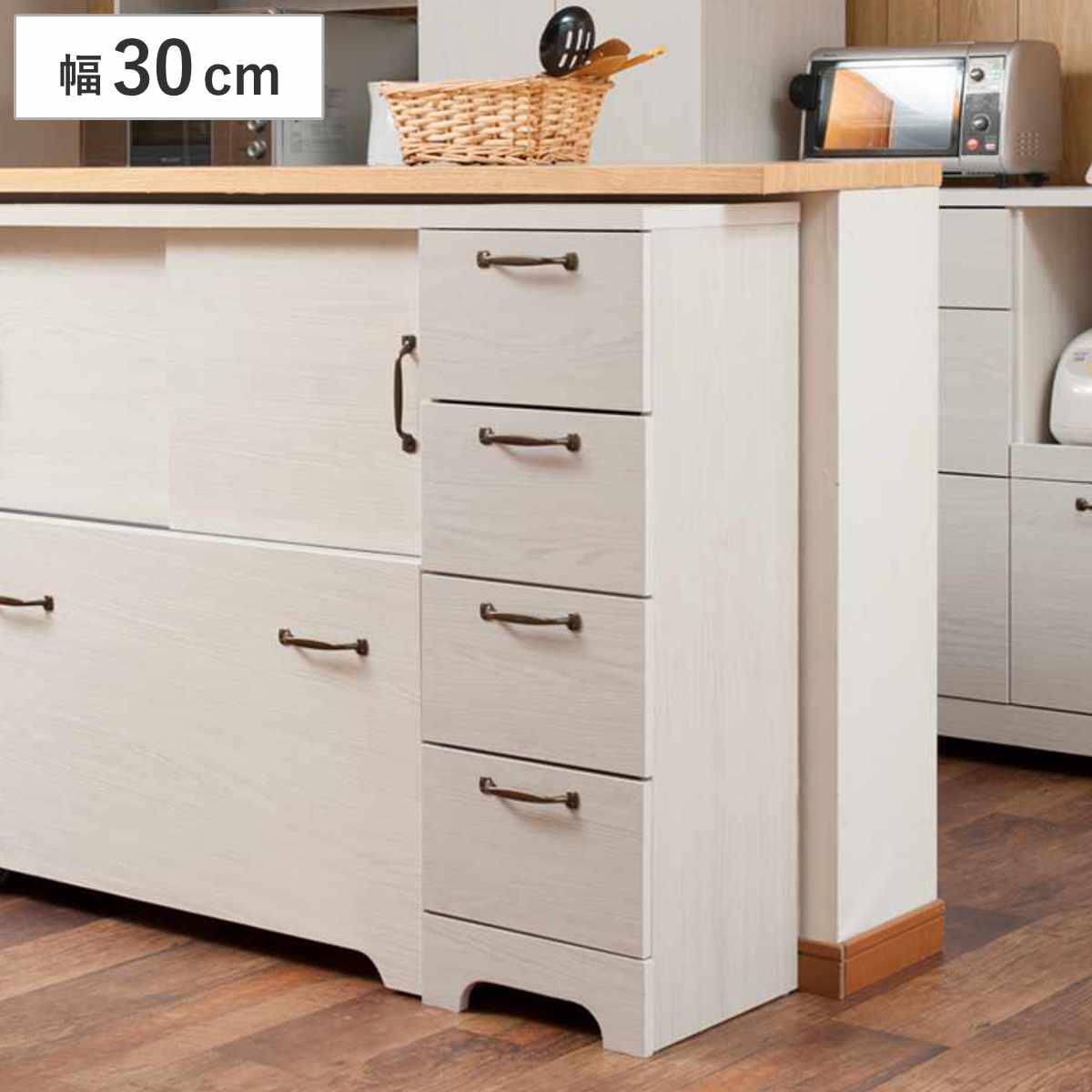 ラック 棚 スリム 引出し 4杯 背面化粧 リビング ホワイト 白 組み合わせ カントリー調 幅30 奥行30 高さ90 cm センチ ホワイトインテリア 北欧 淡色 木目調 おしゃれ お洒落 オシャレ かわいい 可愛い カワイイ キッチン パントリー 引越 新生活 便利 引き出し 引出 フレンチカントリー すき間 家具 LH18362