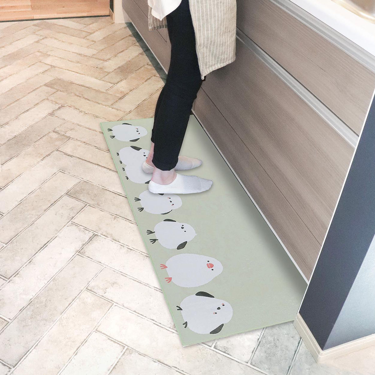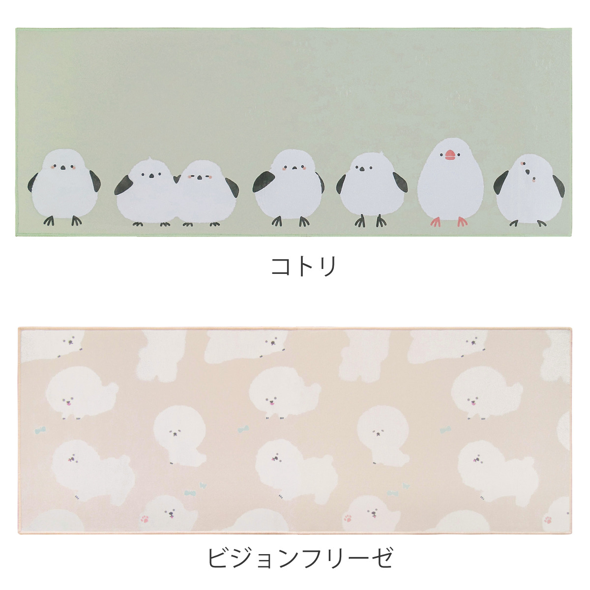 かわいい柄のキッチンマット 45×120cm淡い色合いに水彩風に描かれた動物がかわいい45×120cmのキッチンマットです。季節を問わずに使いやすい色合いと柄で、キッチンはもちろん、玄関や寝室のベッド下、リビングのソファー下などに敷けばお部屋のワンポイントとにもなります。