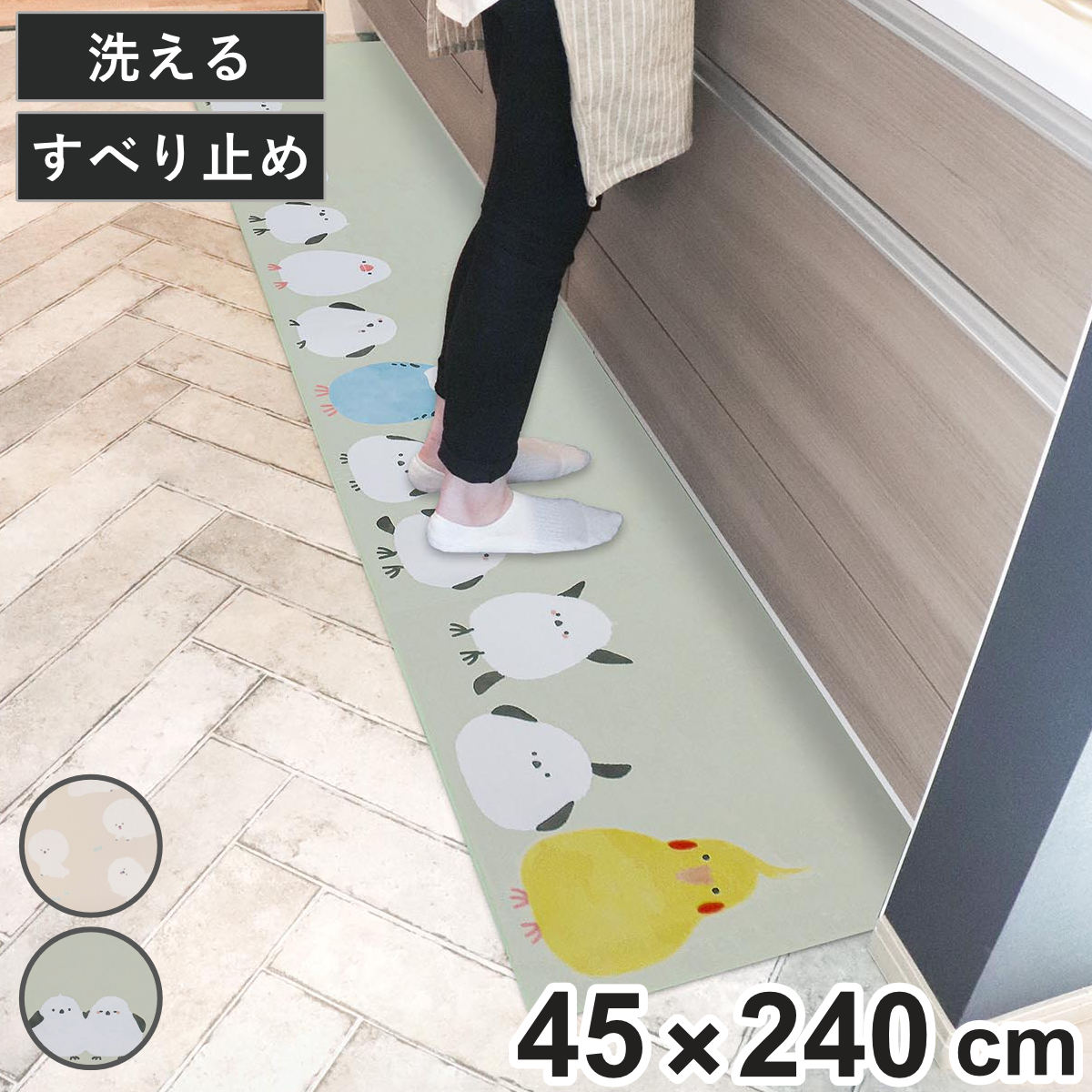 かわいい柄のキッチンマット 45×240cm淡い色合いに水彩風に描かれた動物がかわいい45×240cmのキッチンマットです。季節を問わずに使いやすい色合いと柄で、キッチンはもちろん、玄関や寝室のベッド下、リビングのソファー下などに敷けばお部屋のワンポイントとにもなります。