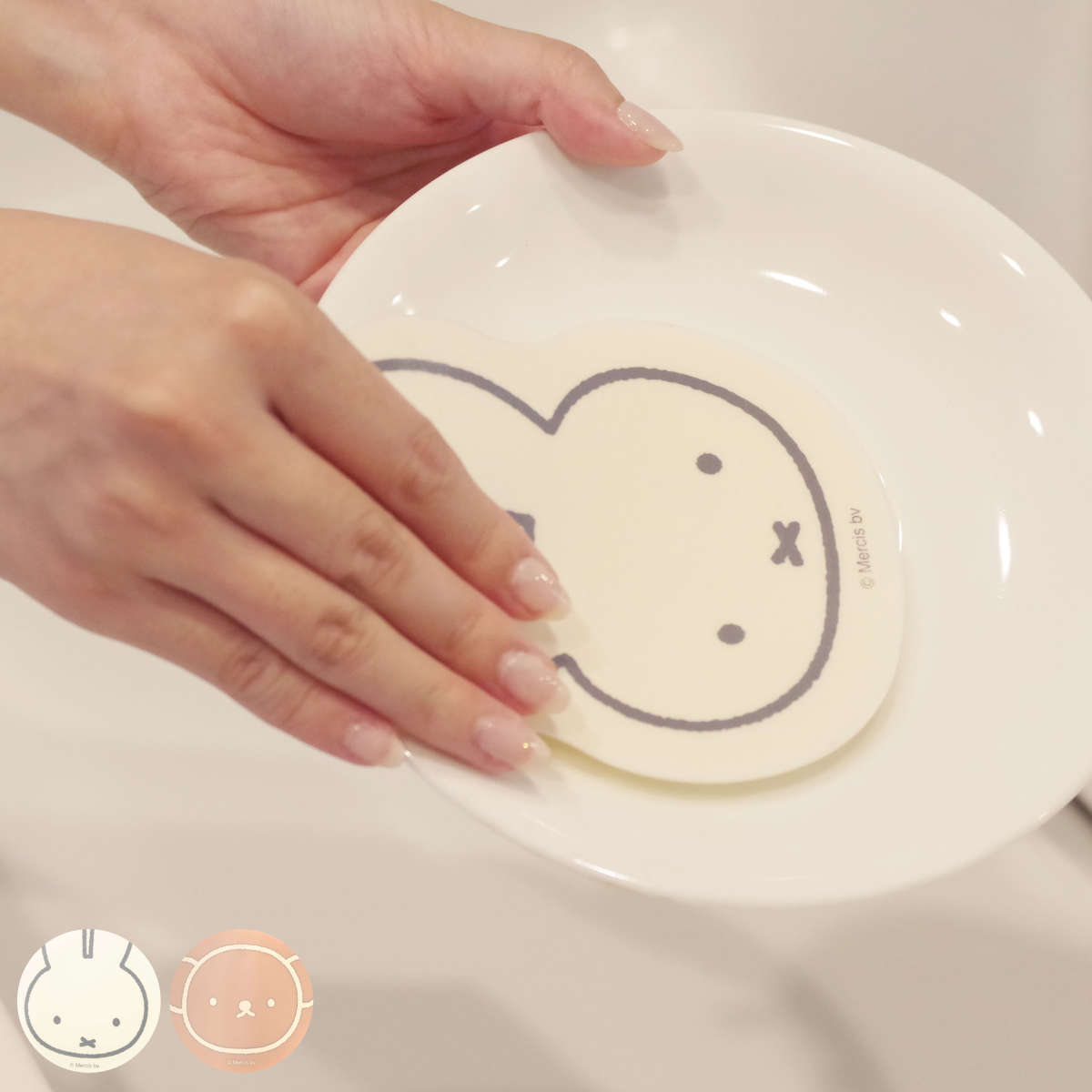 貼るだけで癒される 水切れの良いシリコーン製たわしミッフィーとボリスのお顔がプリントされた、優しい色合いが可愛いシリコン製のたわしです。吸盤付きなので、貼っておくことができて邪魔になりません。