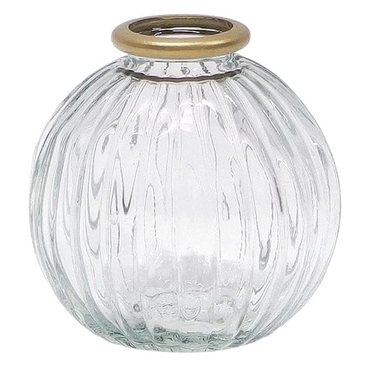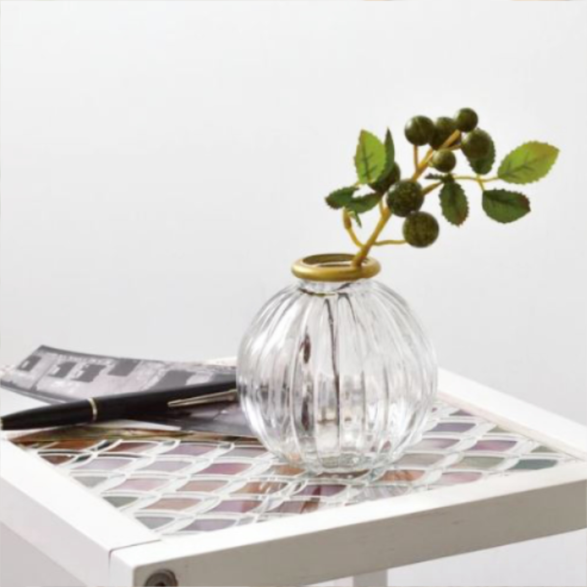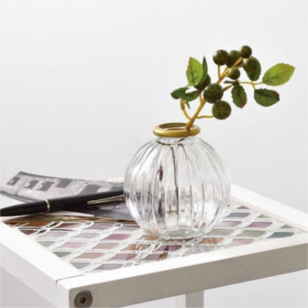 花を活かす上品な一輪挿し グラスベース ボールゴールドの縁取りが上品なシンプルグラスベース。一輪挿しや、ちょっとしたフラワーアレンジにぴったりのサイズです。