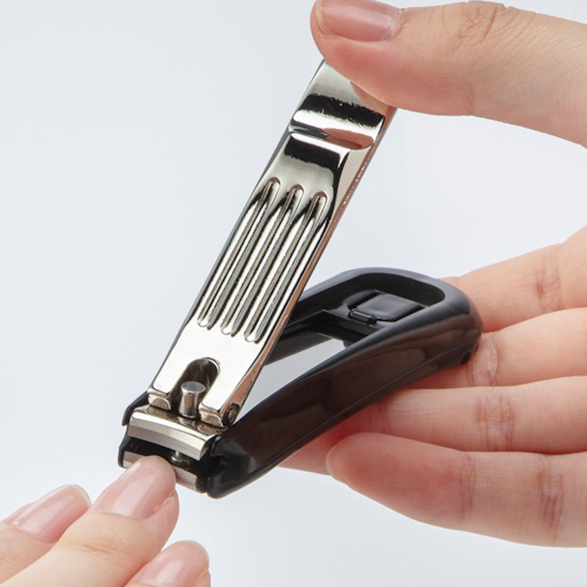 爪飛びを軽減するケース付き爪飛びを軽減する樹脂タイプのキャッチャーケースが付いています。ケアしたいときに、どこでも爪切りができるので重宝します。ケースはスライドさせると取り外すことができます。