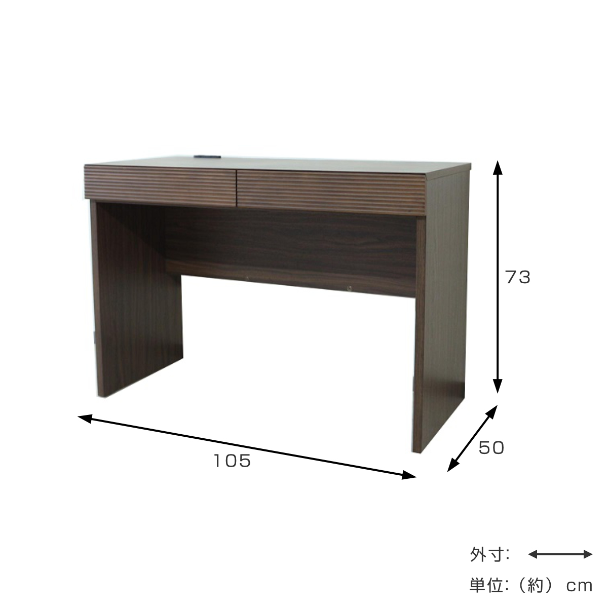 ワークデスク 幅105cm 奥行50cm 引出し付 2口コンセント付 ( デスク 机 学習机 勉強机 パソコンデスク オフィスデスク コンパクト 平机 木製 )