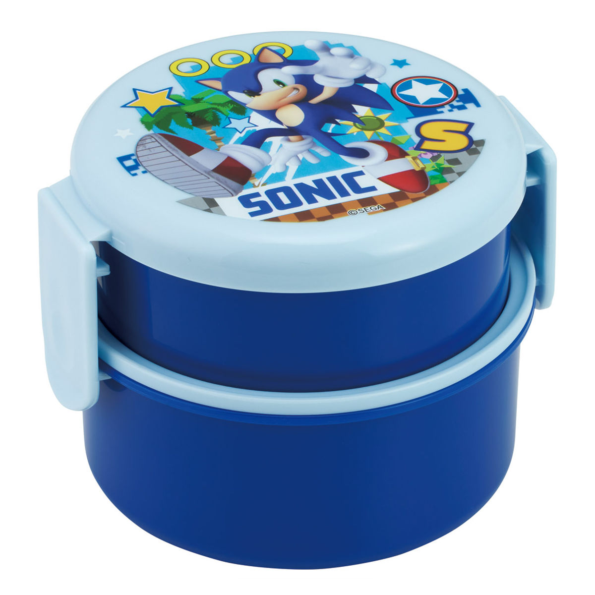 コンパクトサイズの丸型2段お弁当箱●コンビニの丸型おにぎりが袋のまま入るお弁当箱です。