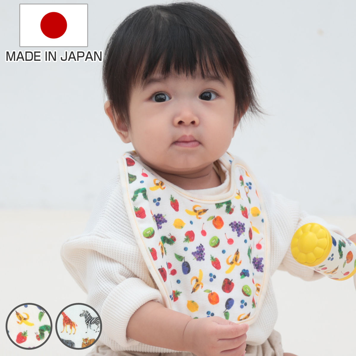 スタイ はらぺこあおむし よだれかけ フルーツ サファリ ( 綿100% ベビー ベビースタイ ビブ 前掛け ガーゼ 綿 日本製 出産祝い プレゼント )