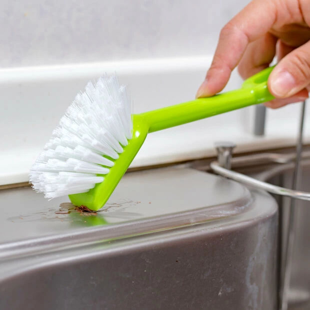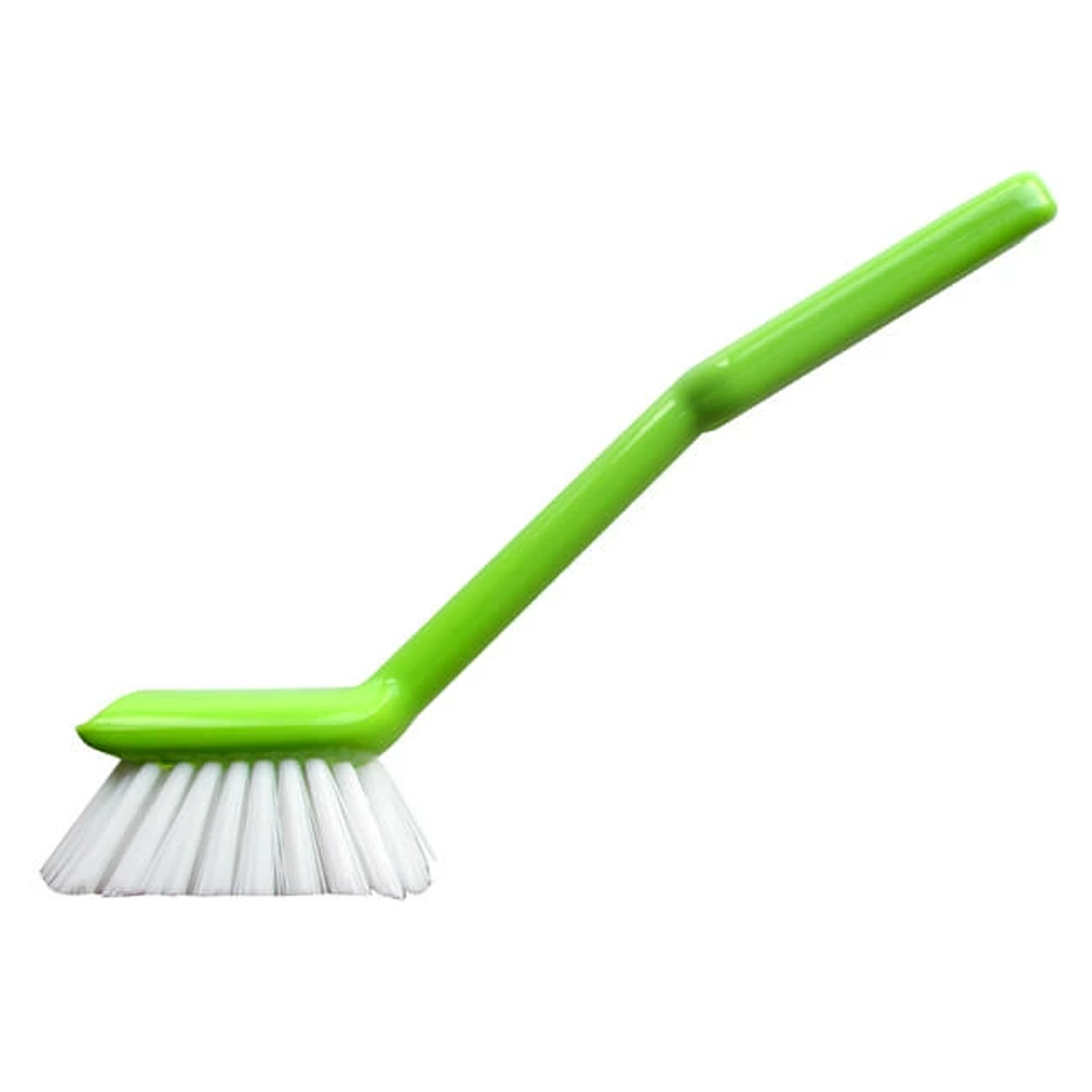 力を入れやすいグリップでゴシゴシ洗えるへばりつくシンクのヌルヌル汚れを落とす掃除用ブラシです。広いブラシ面と力の入れやすい角度で設計されたグリップで、シンクの面も角のカーブもゴシゴシ洗うことができます。