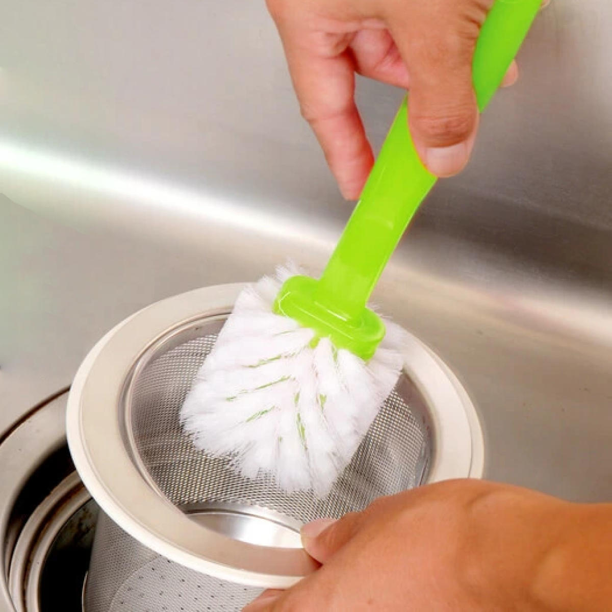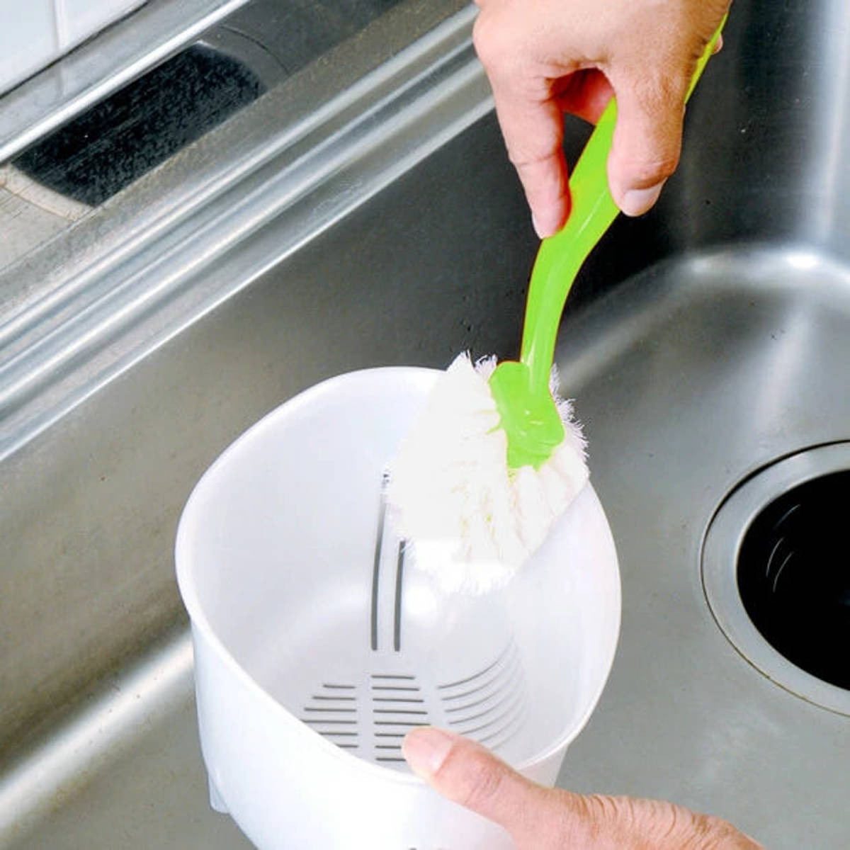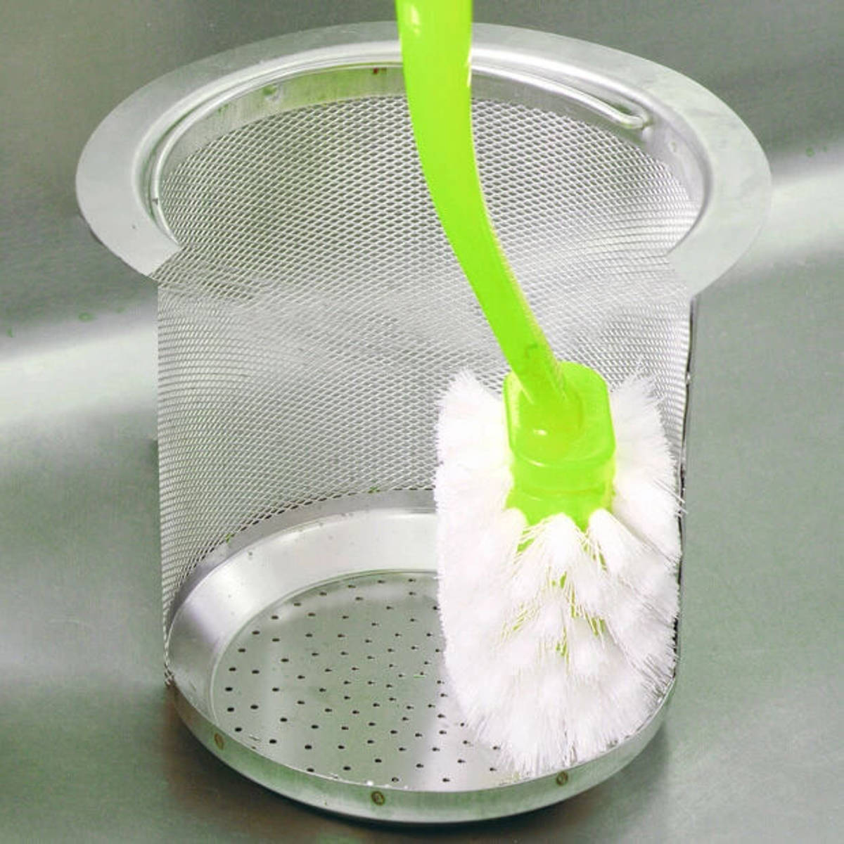 ●360度植毛されたブラシで、排水口内の底と側面が一度に洗えます。