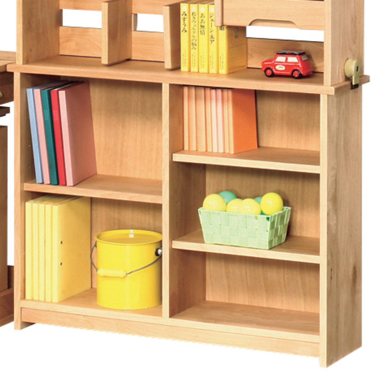 飽きのこないデザインが魅力のシンプルなオープンラックお子様から大人まで幅広く、永くご愛用いただけるアルダー無垢材を使用した、シンプルなデザインのオープンラックです。奥行はスリムながら学校教材をしっかり収納でき、机周りがすっきり。