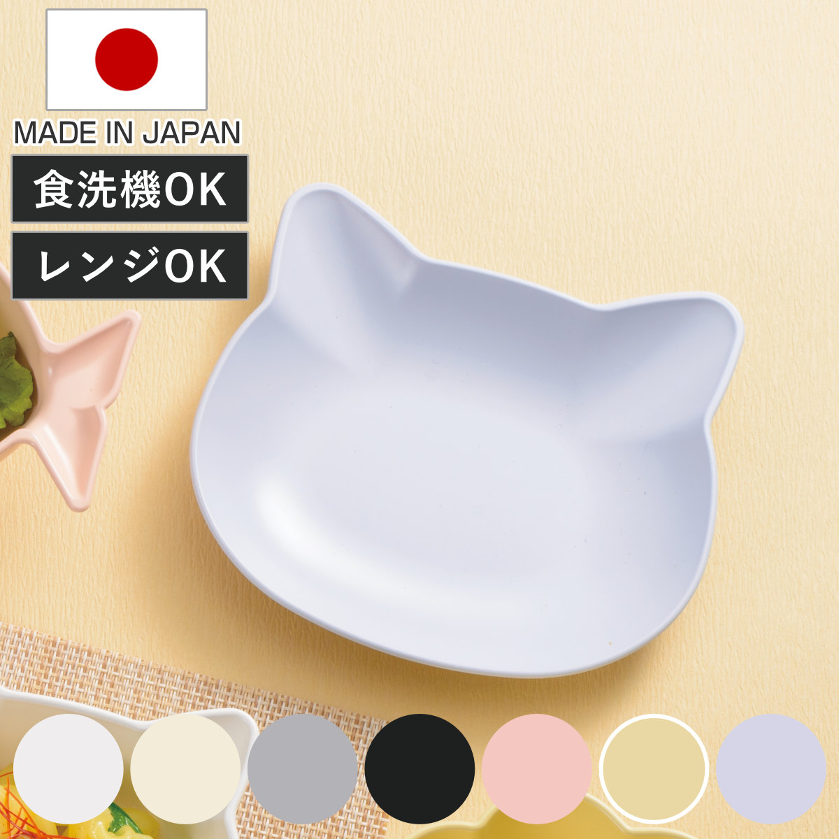 大好きなおやつ時間がもっと楽しくなる小皿猫のお顔デザインがかわいい子ども用食器です。大人の食器と一緒に食卓に並べてもやさしく馴染むパステルカラーも魅力です。抗菌加工により、衛生的にお使いいただけます。