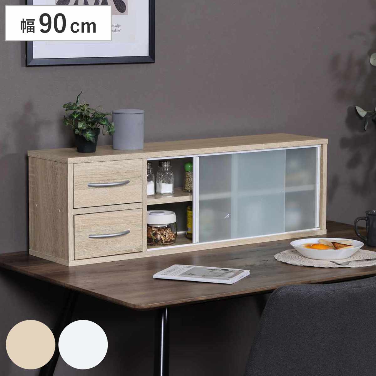 ●前後どちらからでも取り出せるカウンター上収納ラック幅90cmです。