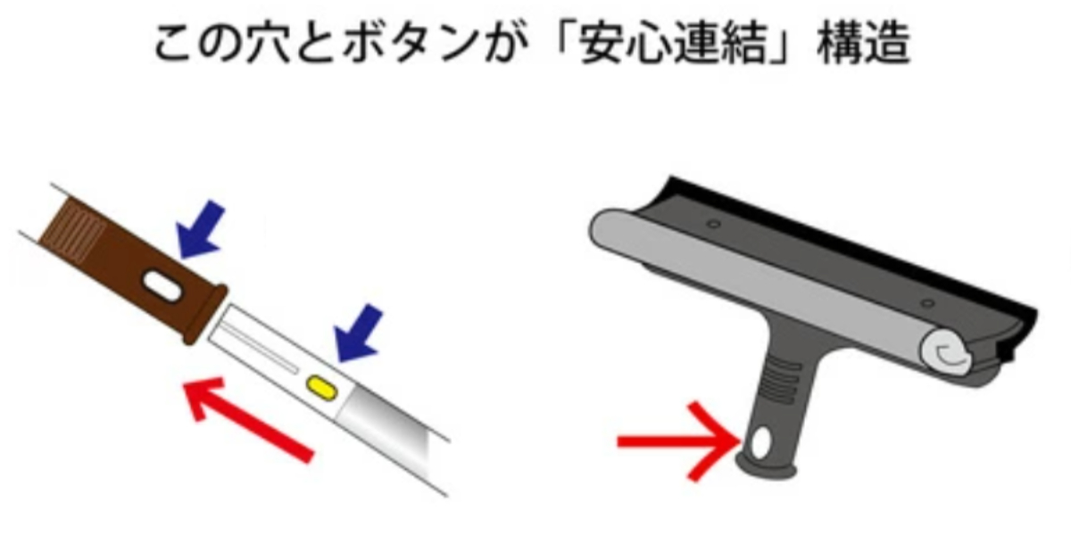 ●別売りの「アルミ伸縮柄 つなぎ柄セットLL554 柄のみ 高所清掃シリーズ」や、「安心連結」構造がついた柄にセットできます。