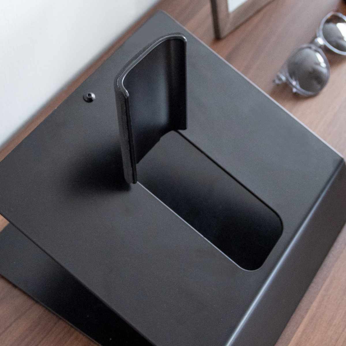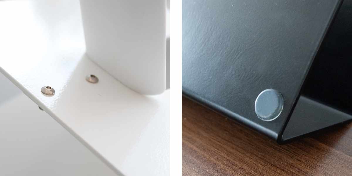 | 組み立て簡単 本体にフックを取り付けるだけの簡単組み立てで、すぐにお使いいただけます。 | 傷つきを防ぐ樹脂パッド付き ベース裏には設置面の傷つきを防ぐ樹脂パッドが付いています。 |