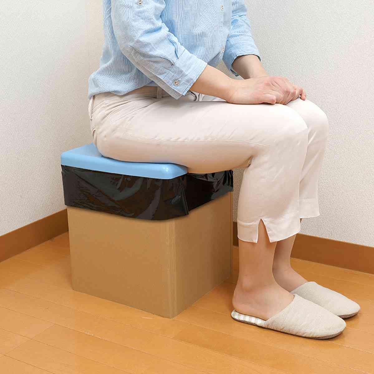 シンプルで少ないパーツだから組み立て簡単必要な時にすぐ組み立てて使える、段ボール製の簡易トイレです。プラスチック製の便座は水洗い可能で、衛生的にご使用いただけます。