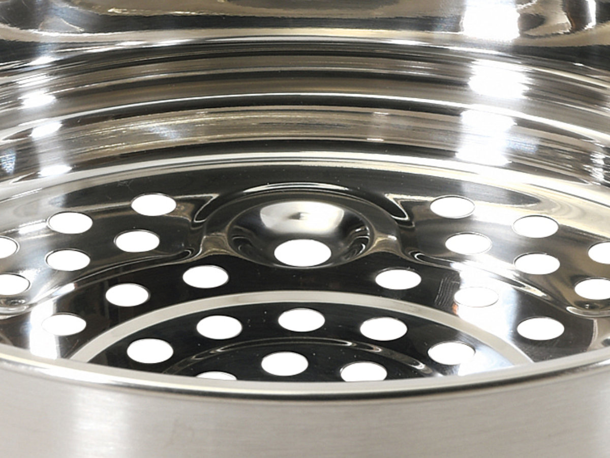 フライパンやお鍋にセットするだけお持ちのフライパンやお鍋に乗せるだけでヘルシーな蒸し料理が作れる、ステンレス製蒸し器です。天然素材のせいろと違いカビの心配がなく、お手入れが簡単です。20cmサイズのフライパンやお鍋でお使いいただけます。