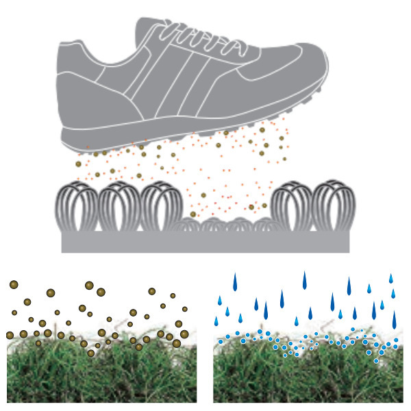 高密度のループパイルが靴裏についた汚れや水気をしっかり取り込んで、マット内部に保持します。