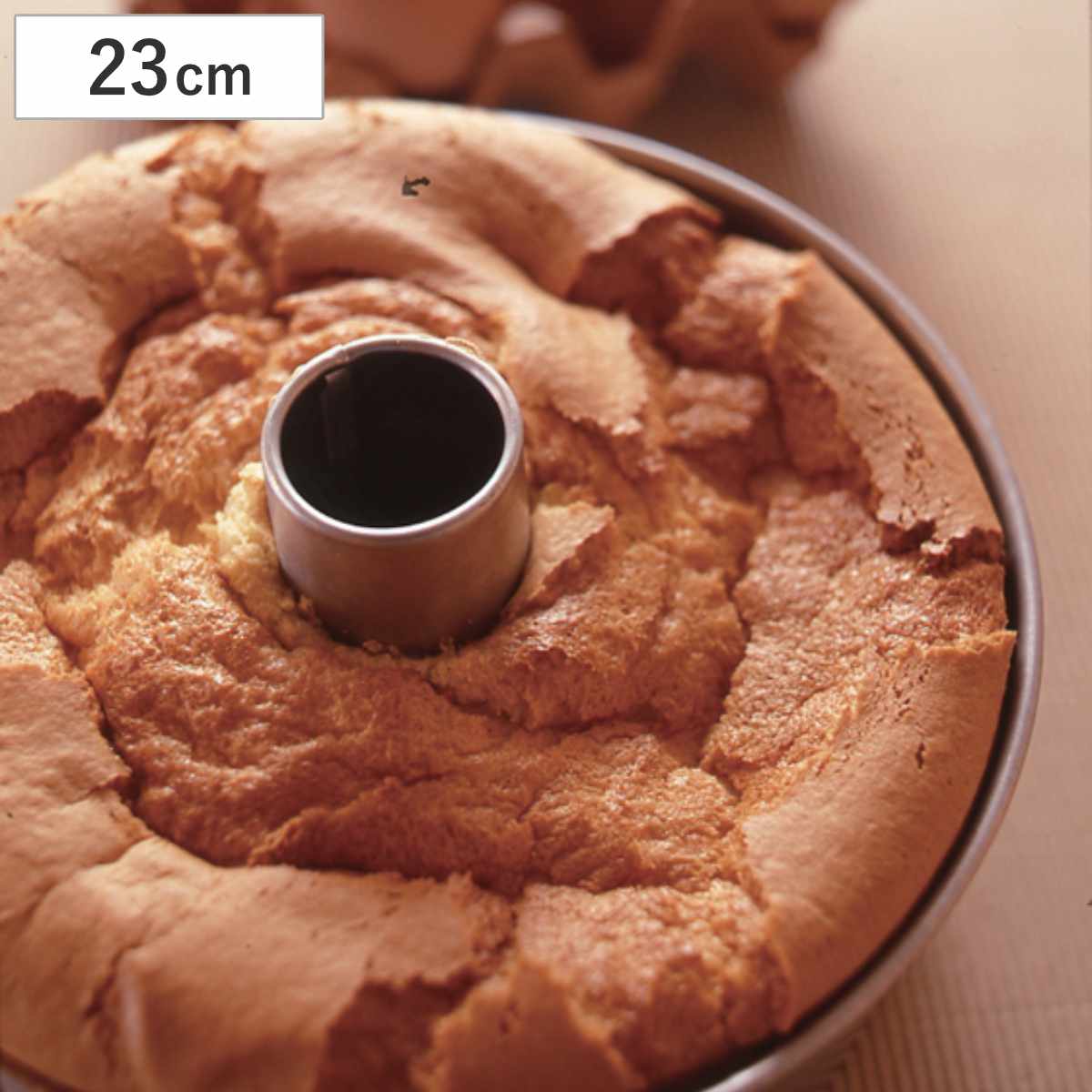 熱伝導が良いシフォンケーキ型 23cm絹のようなふんわりと軽いケーキが焼けるシフォンケーキ型です。直径約23cmと家庭用に使いやすいサイズで、クリスマスやお誕生日のイベント等にも重宝します。