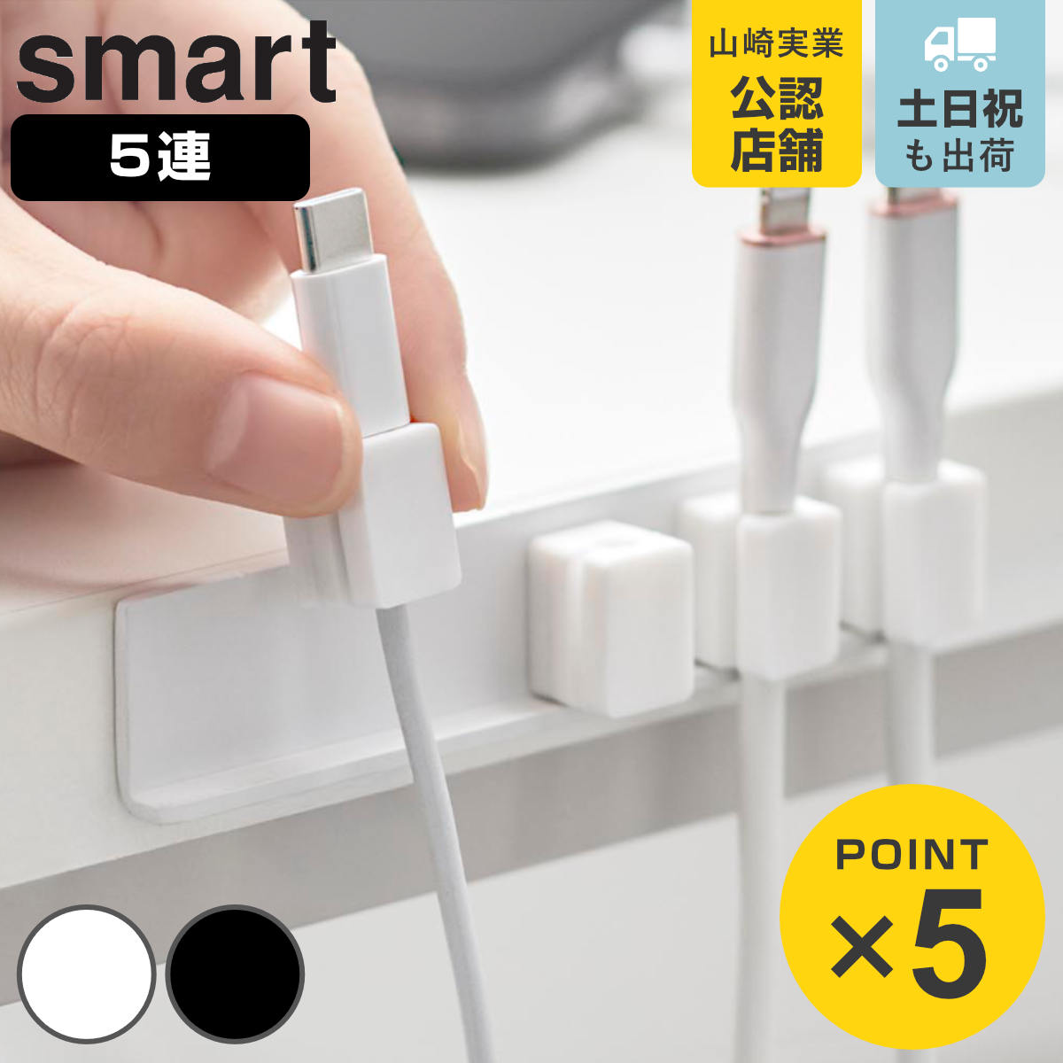 テープで貼り付ける マグネット ケーブル ホルダー 5連ホルダー 浮かせて収納 4903208101967 yamazaki smartシリーズ 山実 YAMAZAKI 山崎 やまじつ 白 黒 モノトーン 無地 シンプル スタイリッシュ ホワイト ブラック コード オフィス 会社 収納 整理 タップ 配線受け デスク収納 配線 固定 デスク パソコン PC ベッドサイド 車内 テーブル アイディアグッズ スマホ 便利アイテム 便利 お役立ち グッズ アイテム おしゃれ オシャレ イヤホン 充電器 LH7673